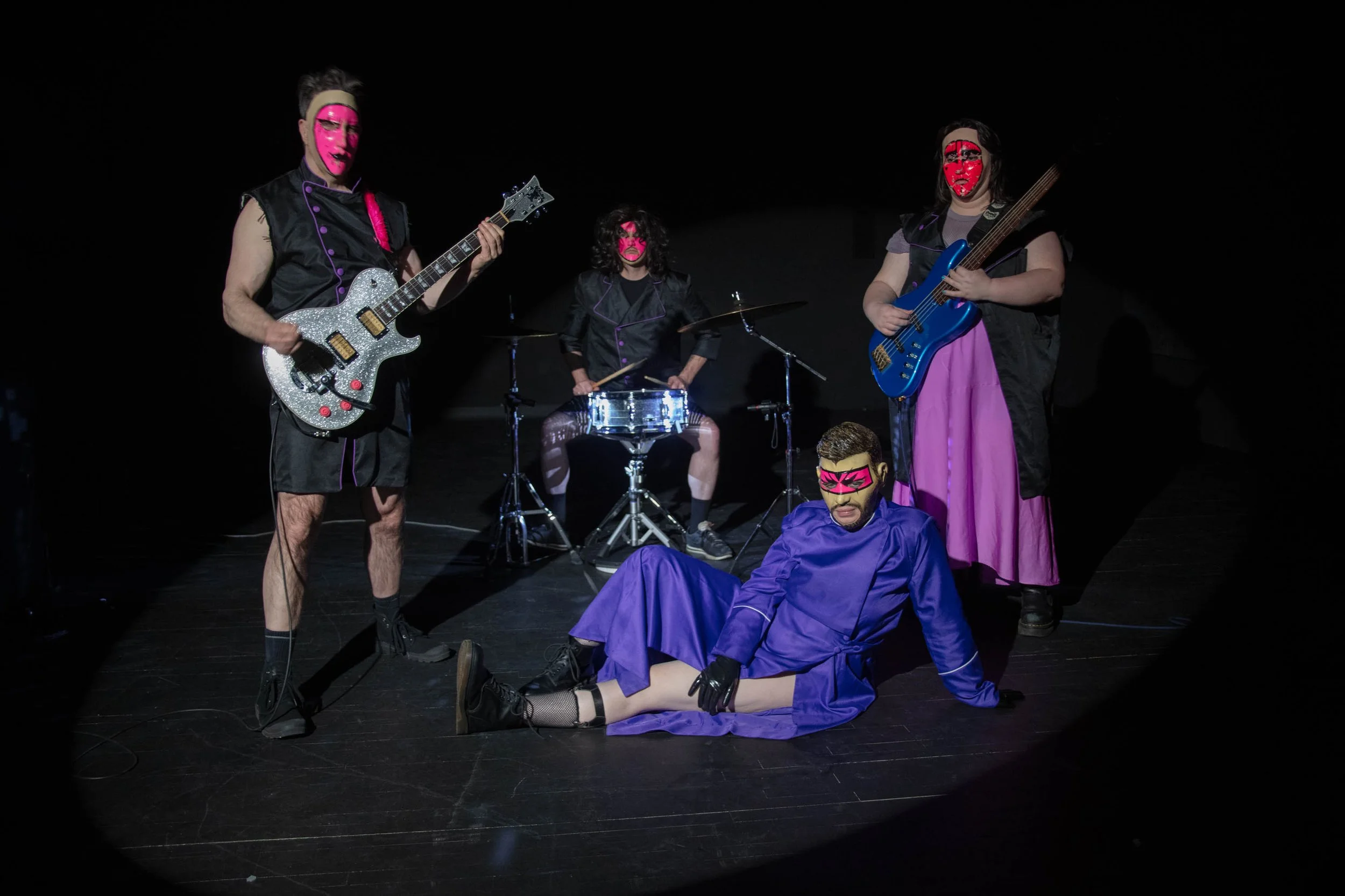 MZZTR (pronounced MIS-ter) emerges from the bowels of NY as a masked horde, channeling rage, seduction, and absurdity through a wall of molten sound. Equal parts spectacle and sincerity, MZZTR exists to corrupt and resurrect, bringing back the lost art of glam, fearless genre and gender bending, unapologetic theatrics and unyielding BDE power.